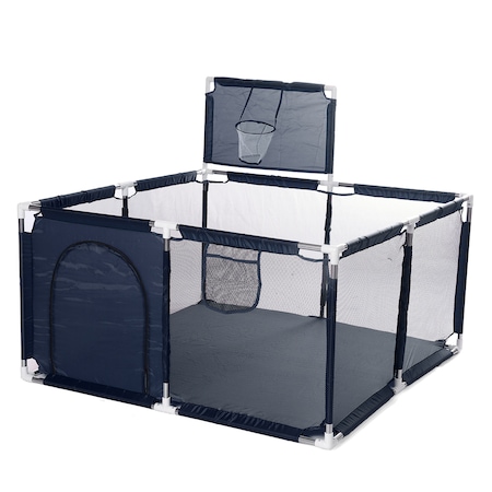 Bioby Járóka Gyerekeknek, Babáknak, Kosárral, 128x128x66cm, Beltéri/kültéri Használatra, Kék